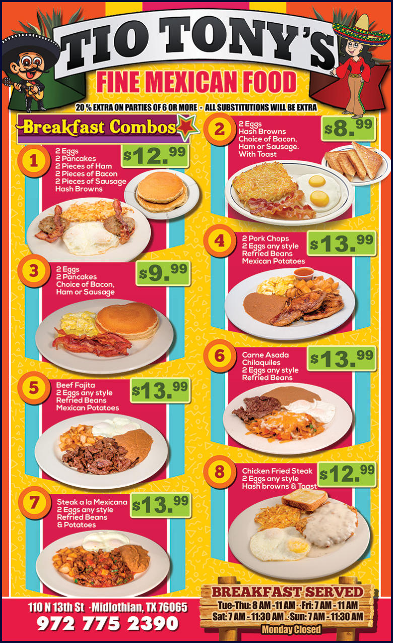 Tio Tony's Fine Mexican Food | 110 N. 13th St., Midlothian, TX 76065