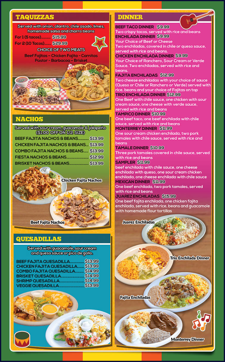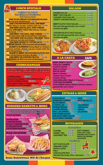 EXTRA SIDES Guacamole Shredded Cheese Sour Cream (3) Flour Tortillas Beans Rice Pico de Gallo Cup of Jalapeños 1.99 .89 .89 1.59 1.99 1.99 .89 .89 BACK TO TOP