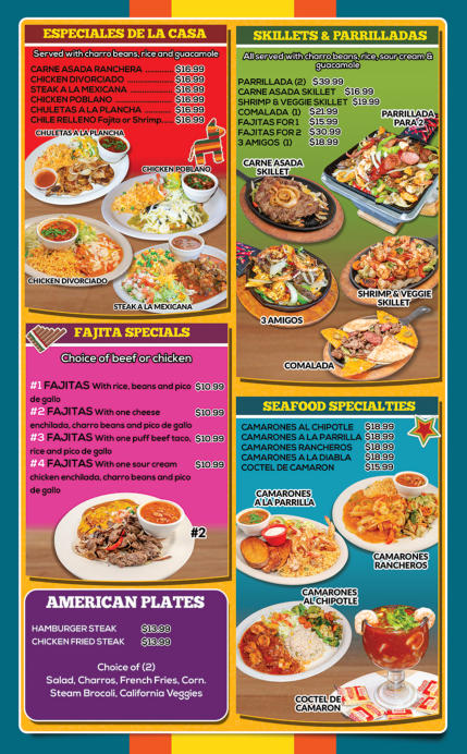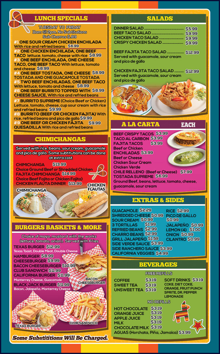 Complimentary chips and hot sauce with your meal only. Order chips and hot sauce cost $3.99 Due to rising food cost, Please make your selection carefully. Consuming raw or undercooked meats, poultry, seafood, shellfish, or eggs may increase your risk of food borne illness